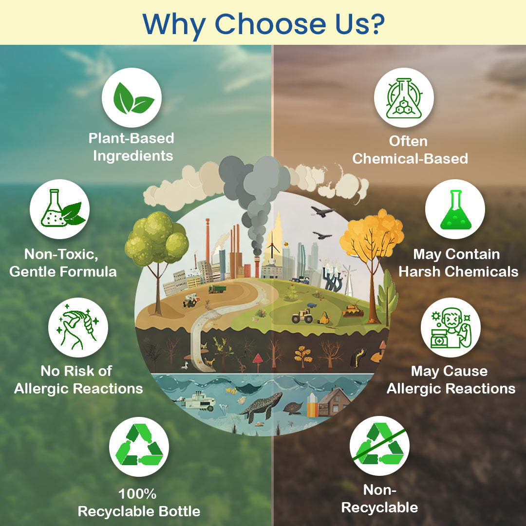 At The Good Planet, we use 100% plant-based, biodegradable ingredients, free from harsh chemicals, sulfates, and artificial fragrances. Our formulas are powered by natural surfactants, essential oils, and botanical extracts that are safe for your home and the environment.